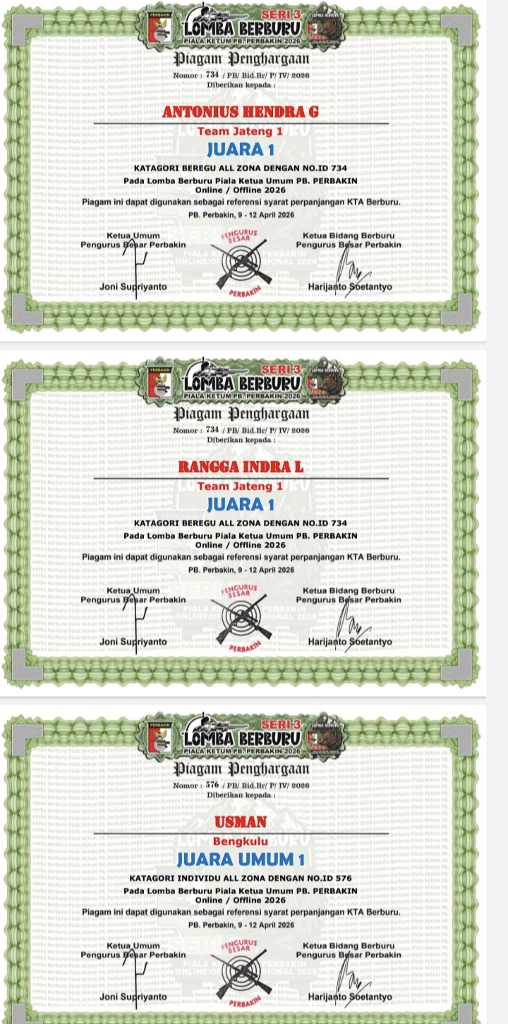 Semarang|Detikidn.com-Dominasi Team Sytong Indonesia kembali berbicara lantang di pentas nasional. Dalam Kejuaraan Nasional Berburu Piala Ketua Umum Perbakin Seri 3 yang digelar pada 9–12 April 2026, tim ini sukses mengukuhkan diri sebagai yang terbaik dengan mempertahankan gelar juara pertama kategori beregu—sebuah pencapaian yang menegaskan konsistensi mereka di level tertinggi.